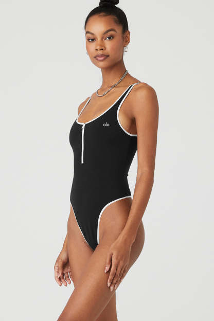 The Supernova Bodysuit is here to steal that front-row mat and everyone*s attention. Designed in our performance-ready Airbrush fabric, this smoothing, sweat-sesh-approved bodysuit is complete with cool contrast piping and front-zipper detail to allow even more ventilation.