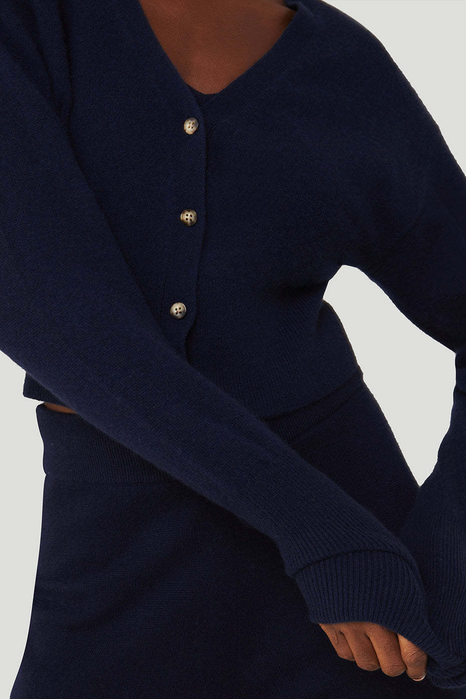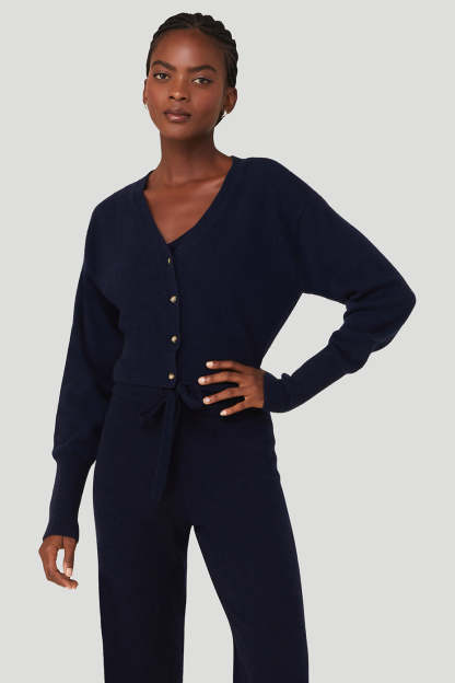 The luxuriously lived-in Cashmere Jet Set Cardigan is a cropped closet classic. Made from 100% cashmere yarn, it features a deep V-neckline, four-button front, and has ribbed cuffs and hem. It*s a perfectly relaxed fit that gets softer with each wear and pairs well with other cashmere and lounge favorites.