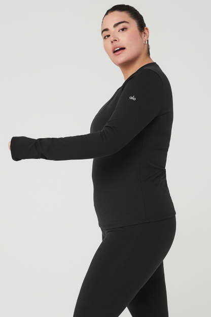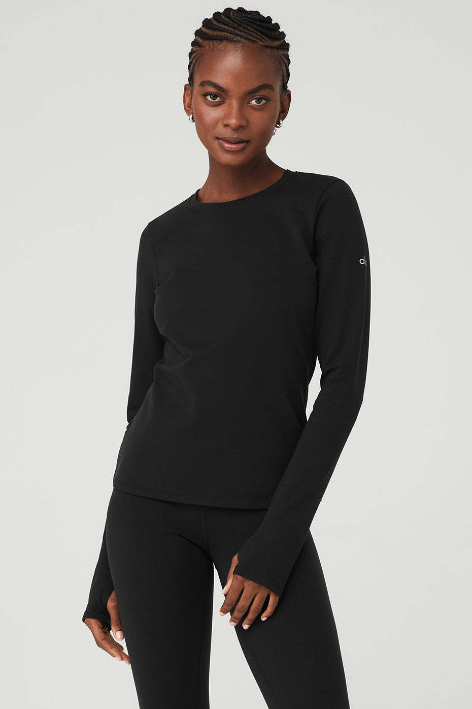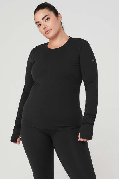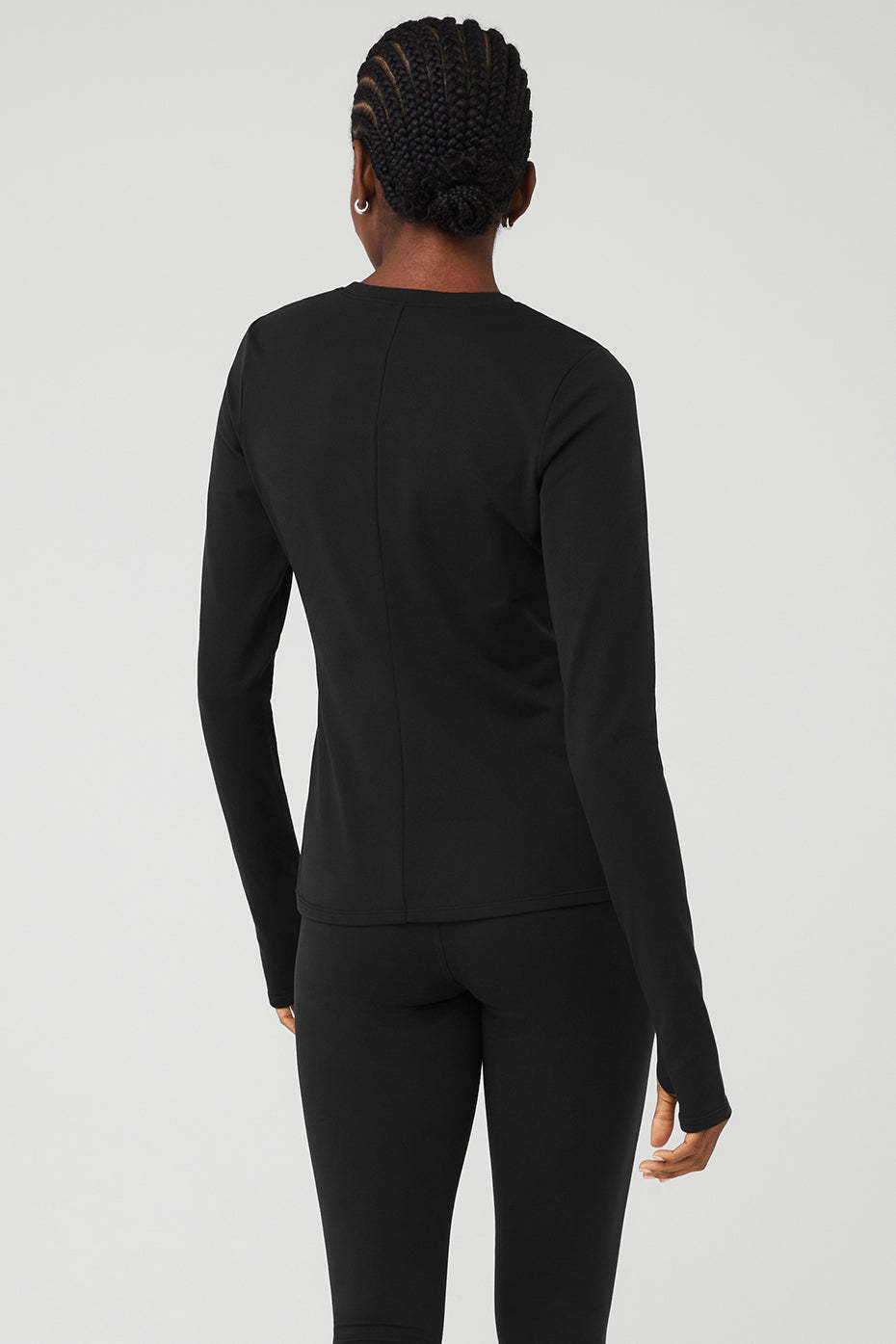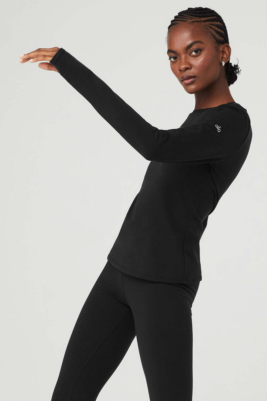 All the warm and fuzzy feels! From studio to street to lounge, the Airbrush Winter Warm Nocturne Long Sleeve*s brushed interior keeps things toasty-warm yet breathable for layering under hoodies and jackets. Made from our sculpting, signature Airbrush fabric, this scoop neck lightweight long sleeve top fits comfortably snug and pairs perfectly with any athelo high-waist legging.