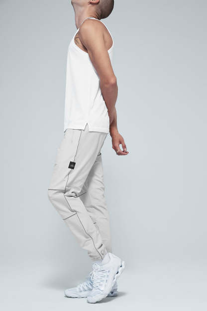 Let these pants light the way. The Torrent Track Sweatpant is made with a lightweight woven fabric and has reflective piping, zip side pockets, cinched cuffs, an elastic waistband and zip pocket at back. Great for working out and wearing out.