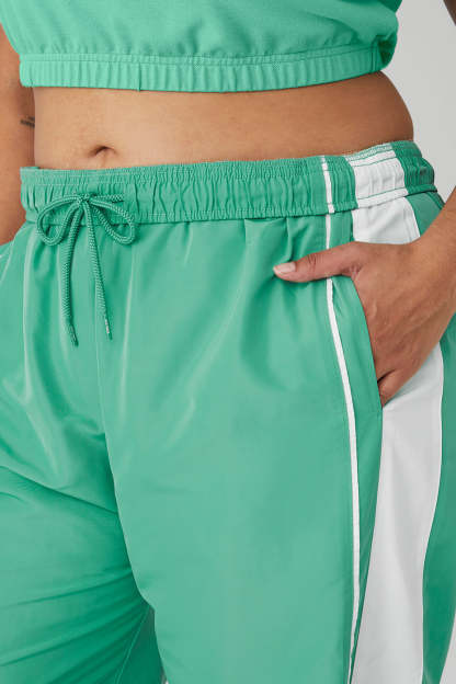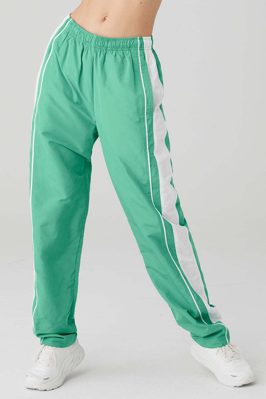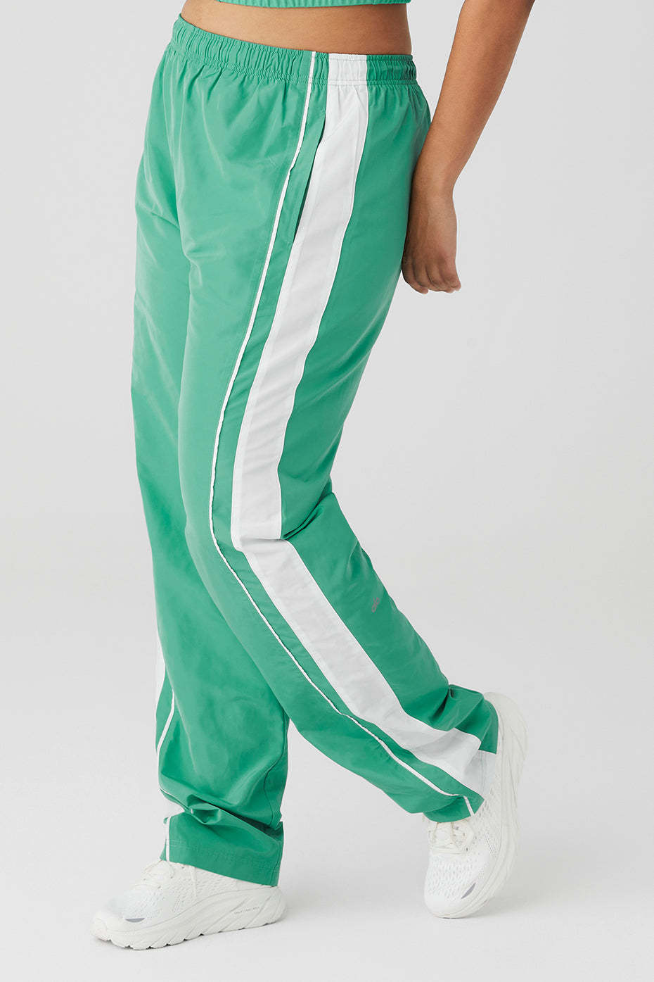 The difference between keeping & setting the pace? It*s the Racetrack Pant. A high-rise pant with performance-perfect piping details down the sides, made in a lightweight woven, movement-friendly fabric with internal drawcords for cinching.
