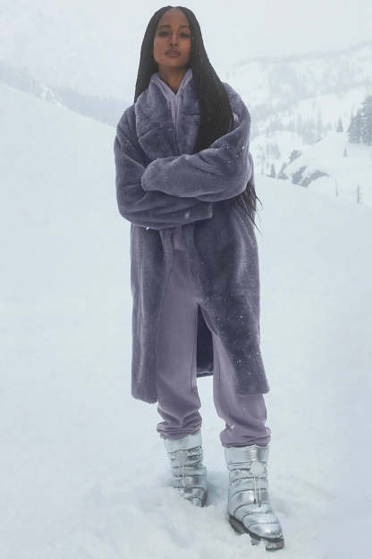 The centerpiece of your winter wardrobe, this luxe coat is made from the softest faux fur you*ve ever felt. The trench-style silhouette has a notched collar, zippered pockets and a sleek, satiny lining. It strikes a long, wonderfully dramatic silhouette, and is designed for an oversized look〞we recommend sizing down if you prefer a closer fit. Pair it with a mini dress and heels for a night out or a sweat set and sneakers for a street look.