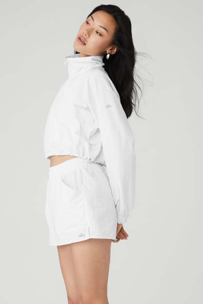 Upgrade your coverup collection with the Cropped ? Zip Alumni Pullover, cut from cool crinkle woven fabric that*s perfect for to-and-from yet easy enough to lounge in. Make it pop with leggings, biker shorts or a cute tennis skirt.