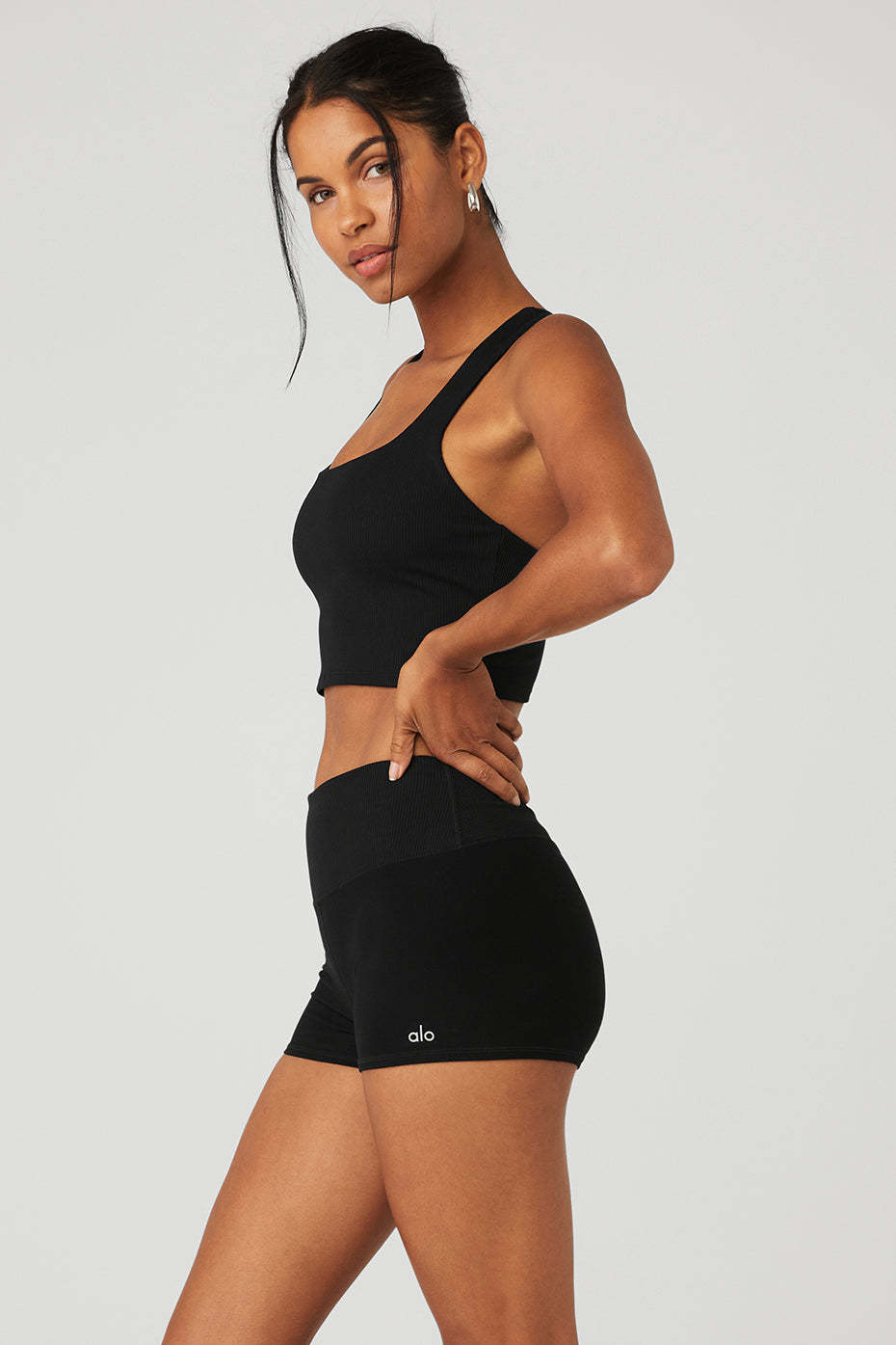 This look is literally everything. Made from soft, super-breathable athelosoft in a supportive, ribbed fabrication, the forward Chic Bra Tank,features a V-racerback, rounded square neckline & shelf bra lining for all-day support. We love it with a cool moto legging.