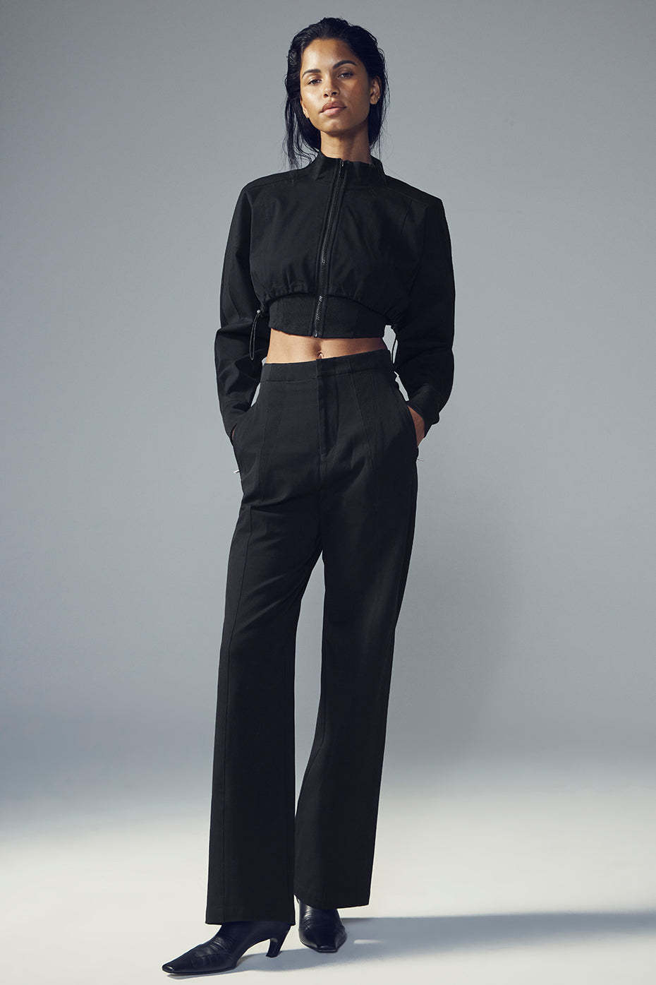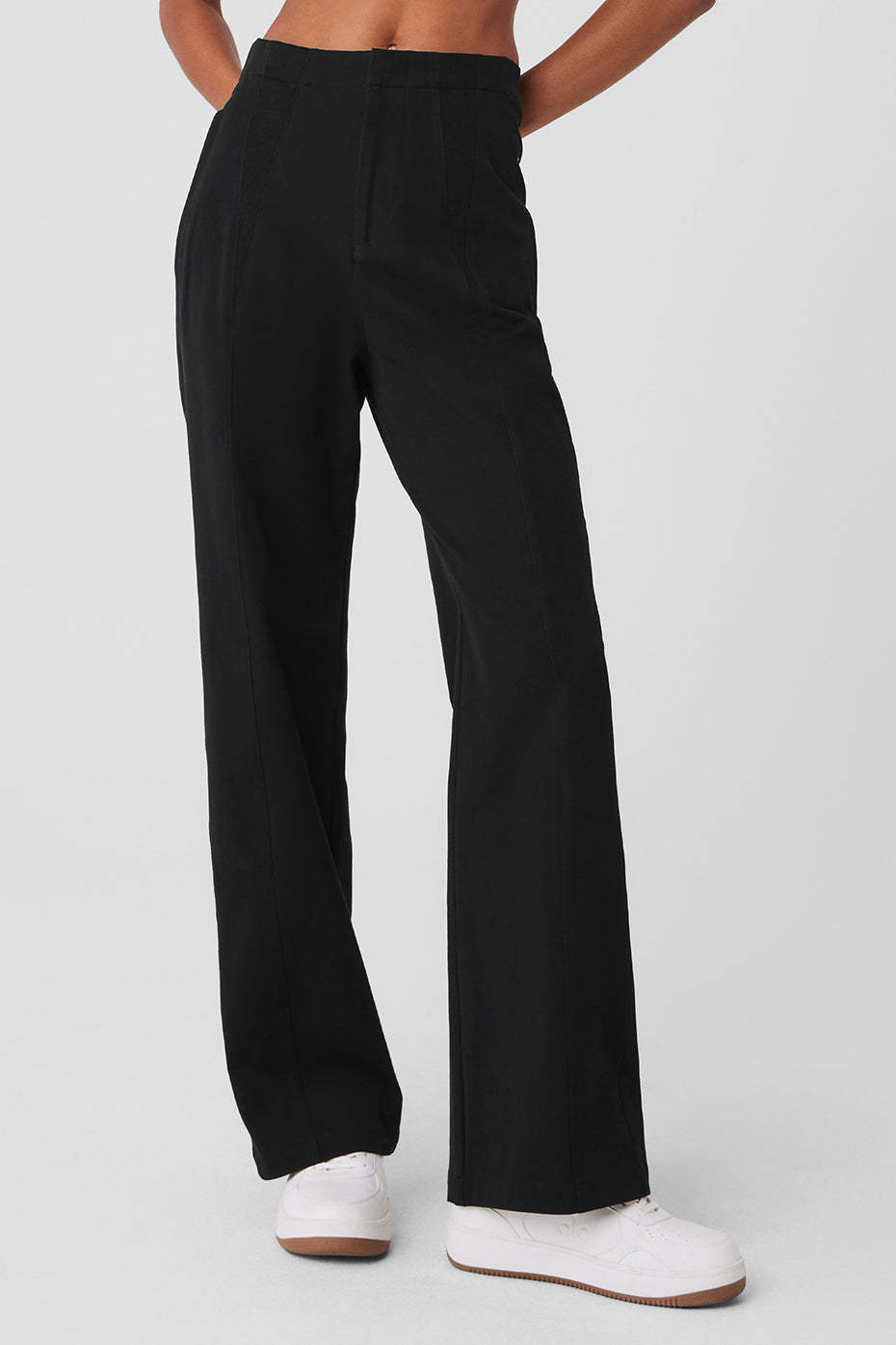The name says it all: These pants are totally on point. Made from a slightly structured, slightly stretchy cotton blend, they have a super high rise, a tailored waistband and wide legs. Zippered side pockets are perfect for stashing cash or a house key. And don*t miss the standout detail〞contrasting panels at the hips that match up perfectly with the On Point Jacket.