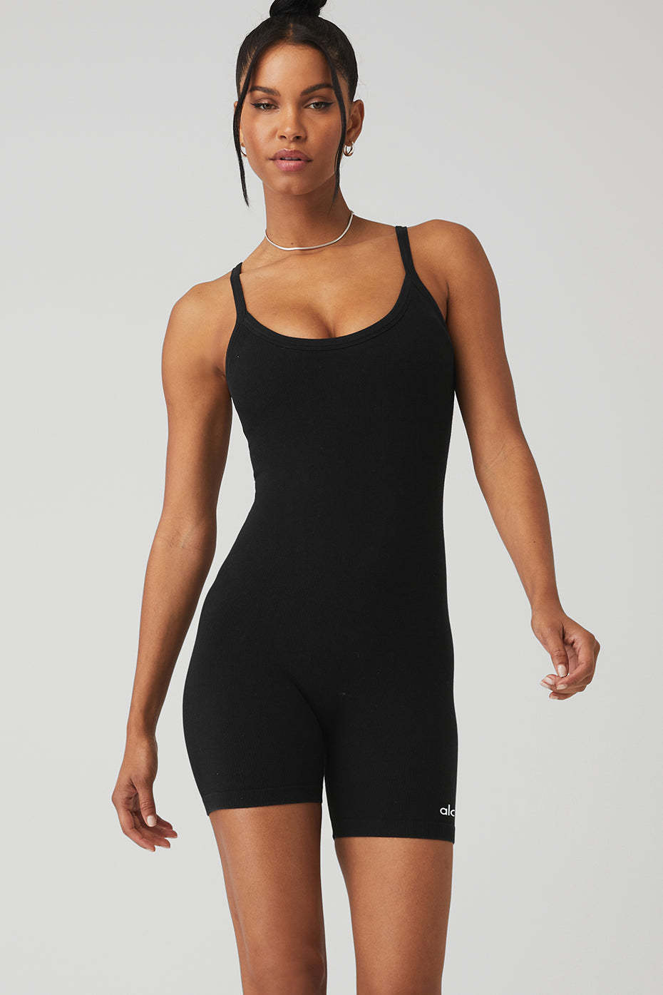 Practice? Lounge? Street? The Seamless Ribbed Mellow Onesie does it all. Totally seamless with a sweet scoop neck at the front and back. Get comfy or get moving and wear with a pair of cool kicks.
