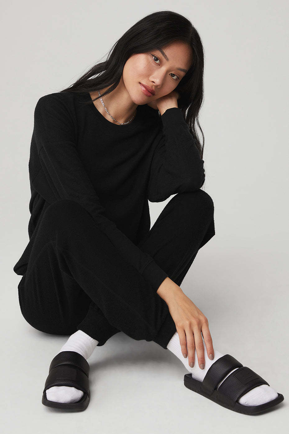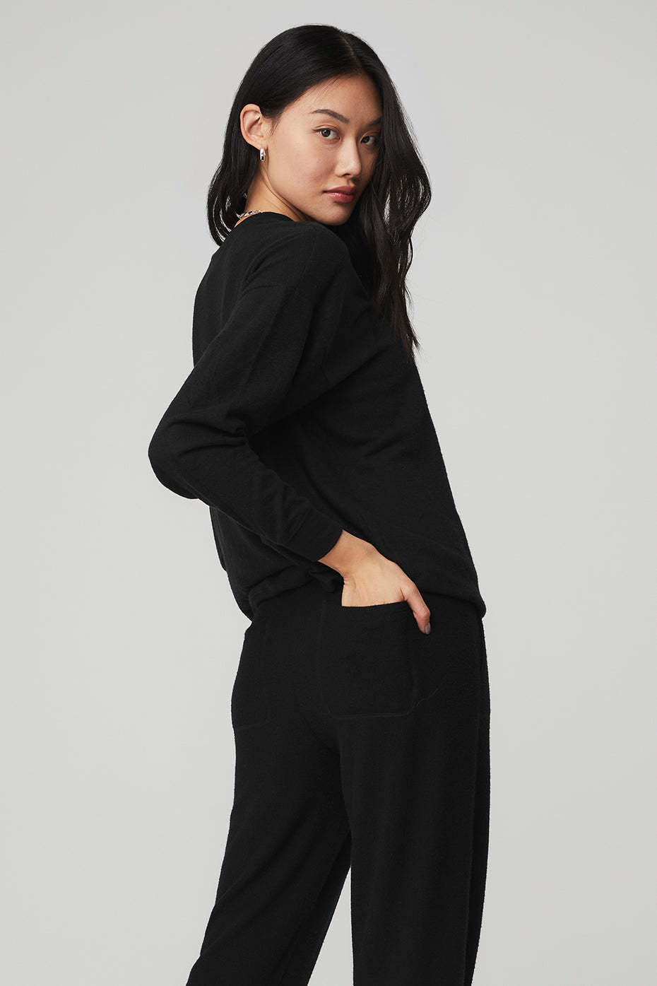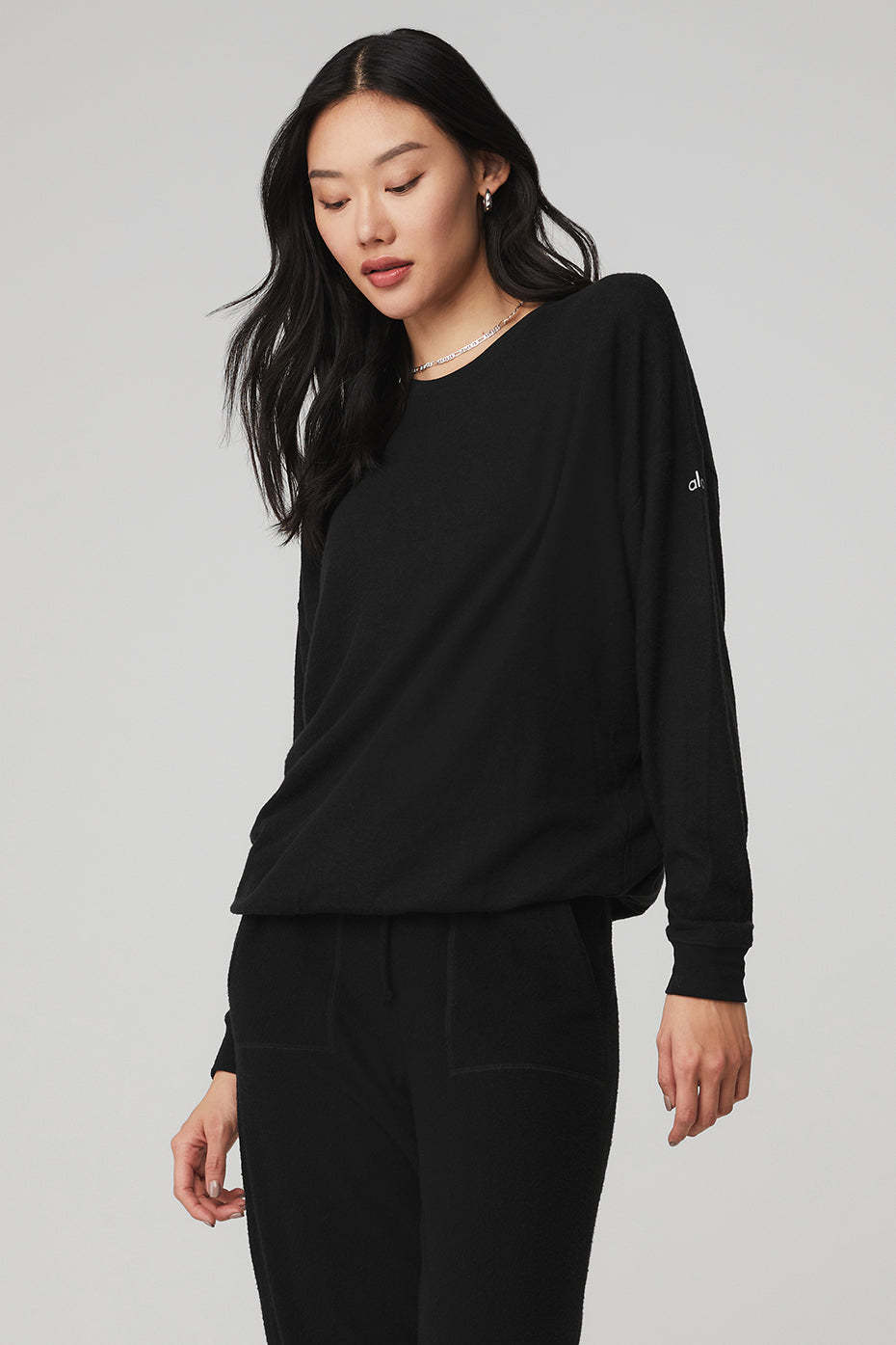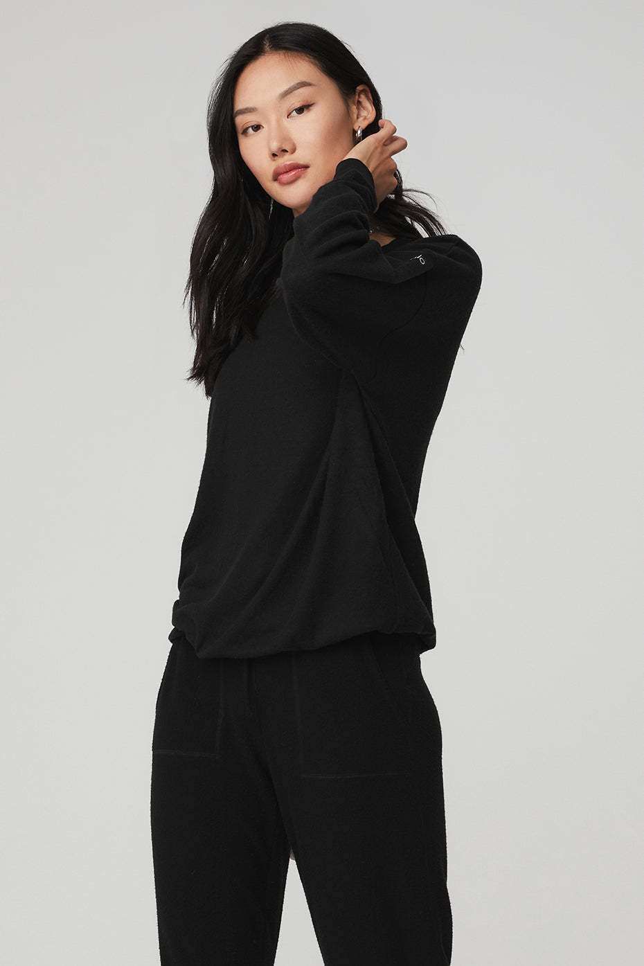 A studio-to-street must-have, the Soho Pullover is seriously soft. This look is pre-washed to give it that lived-in cozy feel, and will continue to distress and pill with each wash and wear. Made from our signature athelolux fabric, it features a long body and long sleeves. Luxe, cashmere-like feel with moisture-wicking properties makes this the perfect warm-up for heading to practice.