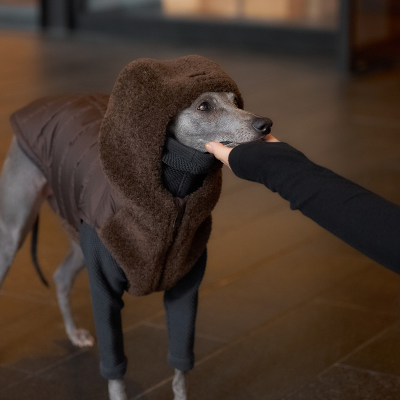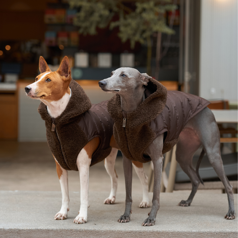 Elevate your walks with our MERINO Down Vest—designed just for stylish dog lovers. This plush, teddy fur vest keeps you warm and chic, thanks to its cozy hood and soft front panel. Warmth, Comfort, and Versatility The outer shell blends a rich mixture of fabrics for texture and durability, all brought together in an irresistible Mocha Mousse hue—a neutral with a hint of playful sweetness. The front features plush teddy fur, extending into a generously sized hood, creating a statement look while wrapping you in next-level softness.