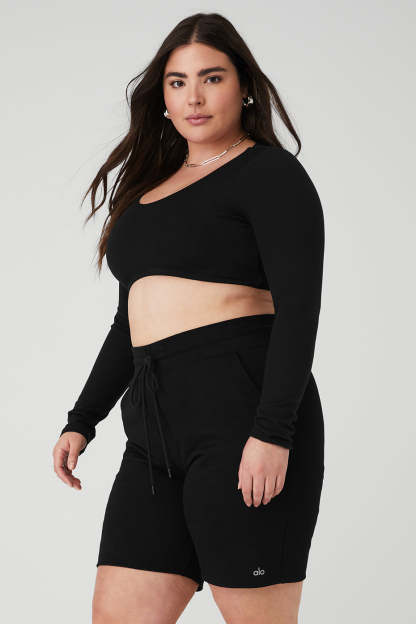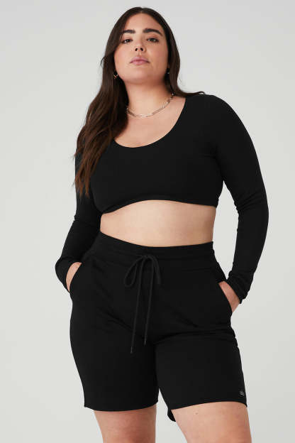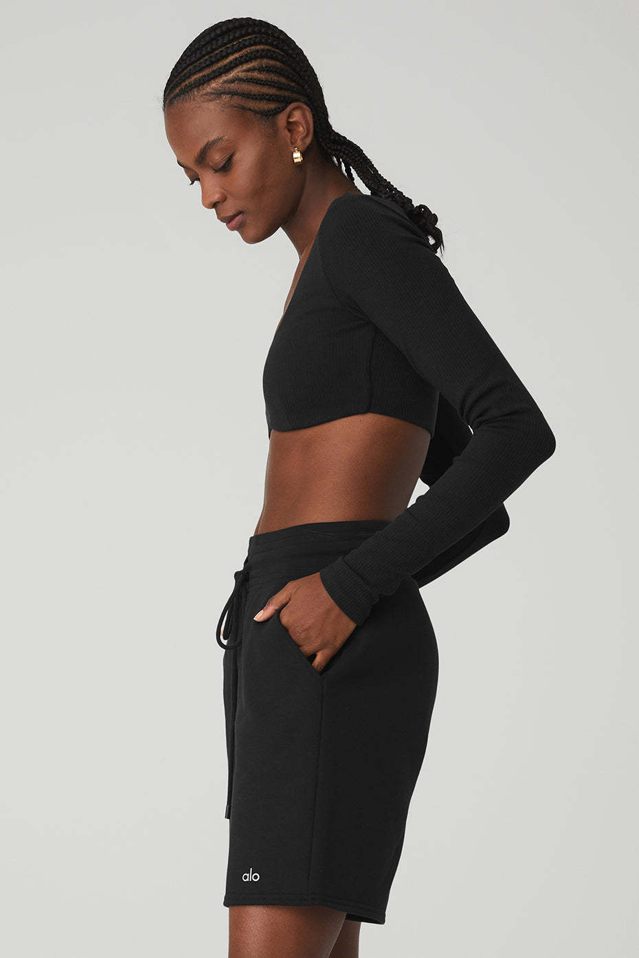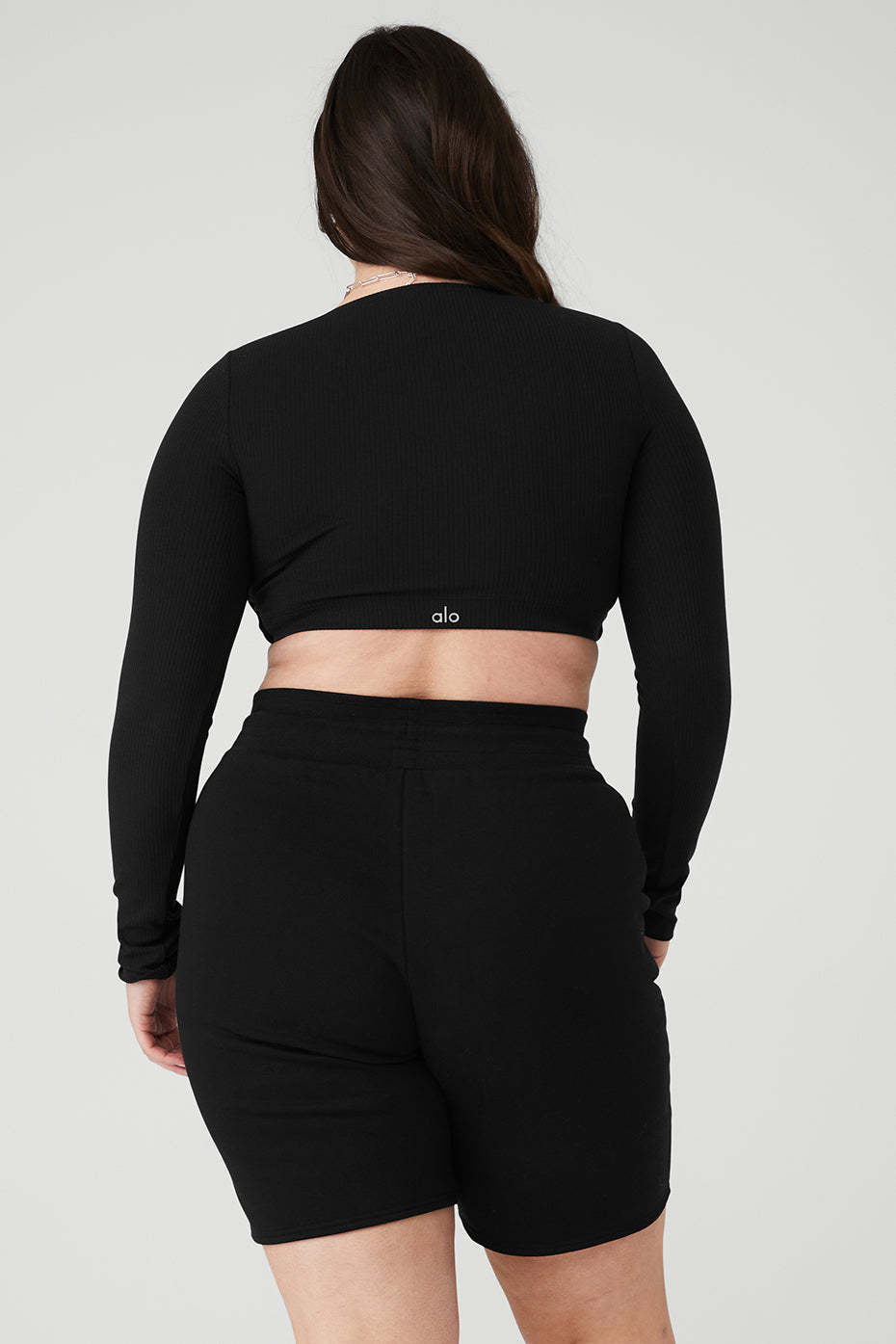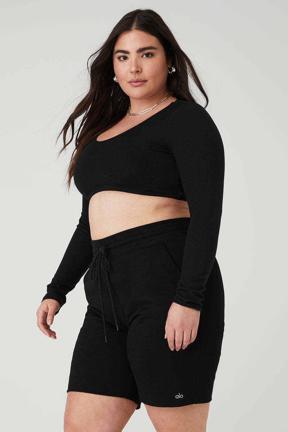 OM-M-G this. Too-cute Ribbed Defined Long Sleeve Bra is it. A tiny cropped bra top, with removable cups and a scoop neck〞all in comfy Wellness ribbed fabric. We*ll be wearing it with flared leggings.