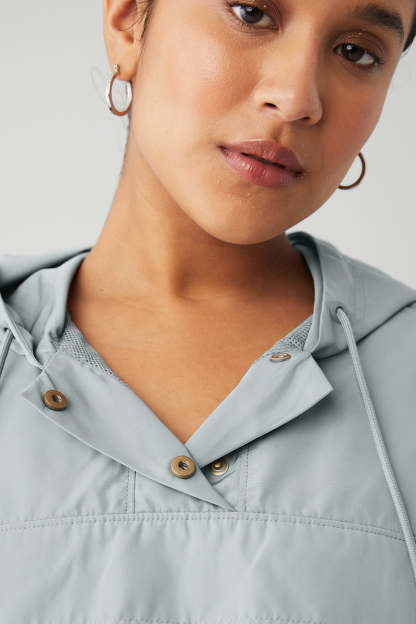 This hoodie is just right in every way 〞 lightweight yet warming, fits like a dream, and wears well everywhere. With a drawstring hood, bungees at the waist, and a breathable mesh lining, the Interntional Anorak Hoodie is an essential upgrade for to-and-from. Pair it up with comfy, high-waist bottoms for every day.