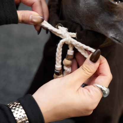 - Adjustable Collar: Finished with a braided string and bead, so you can style it loose or snug for the perfect fit.