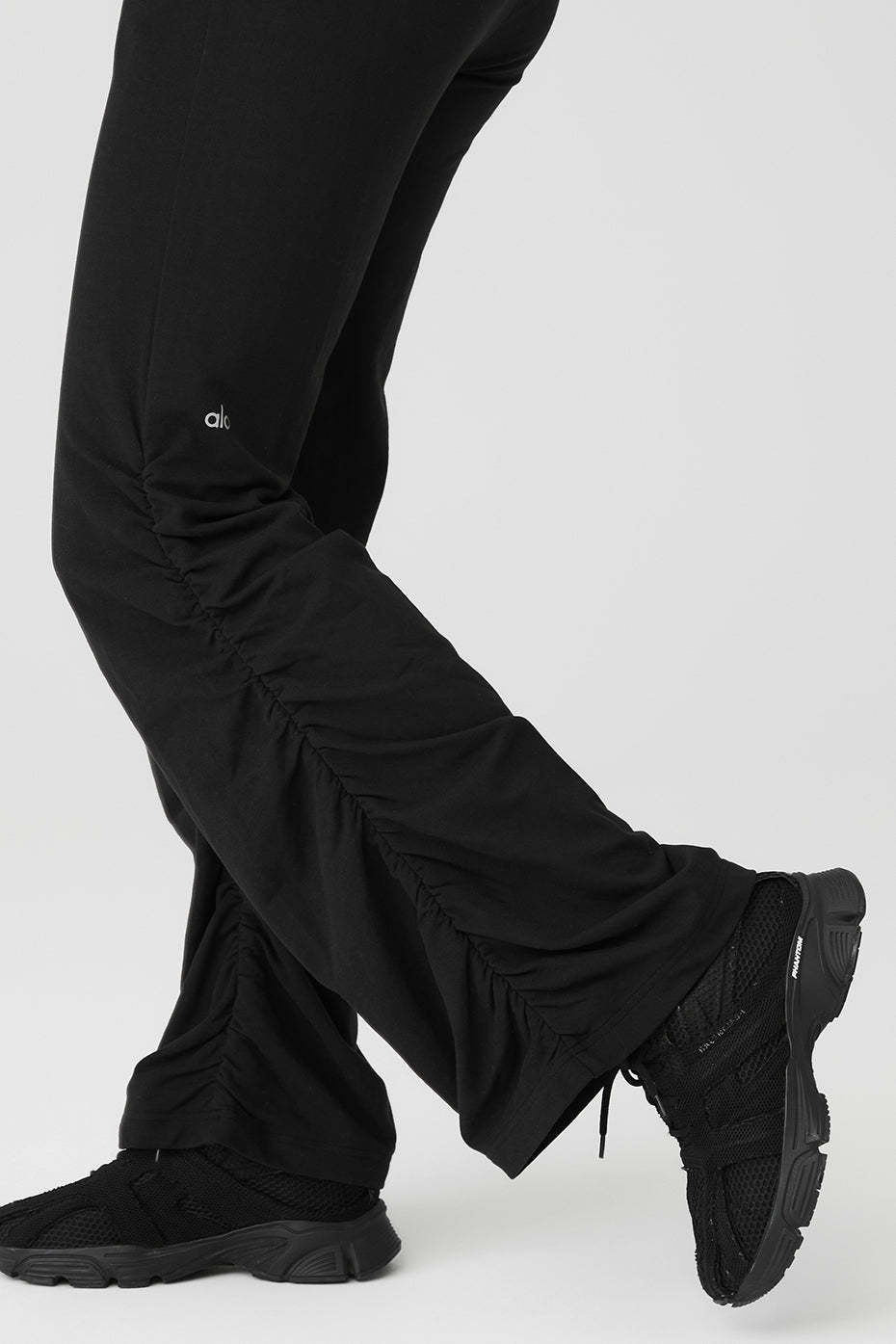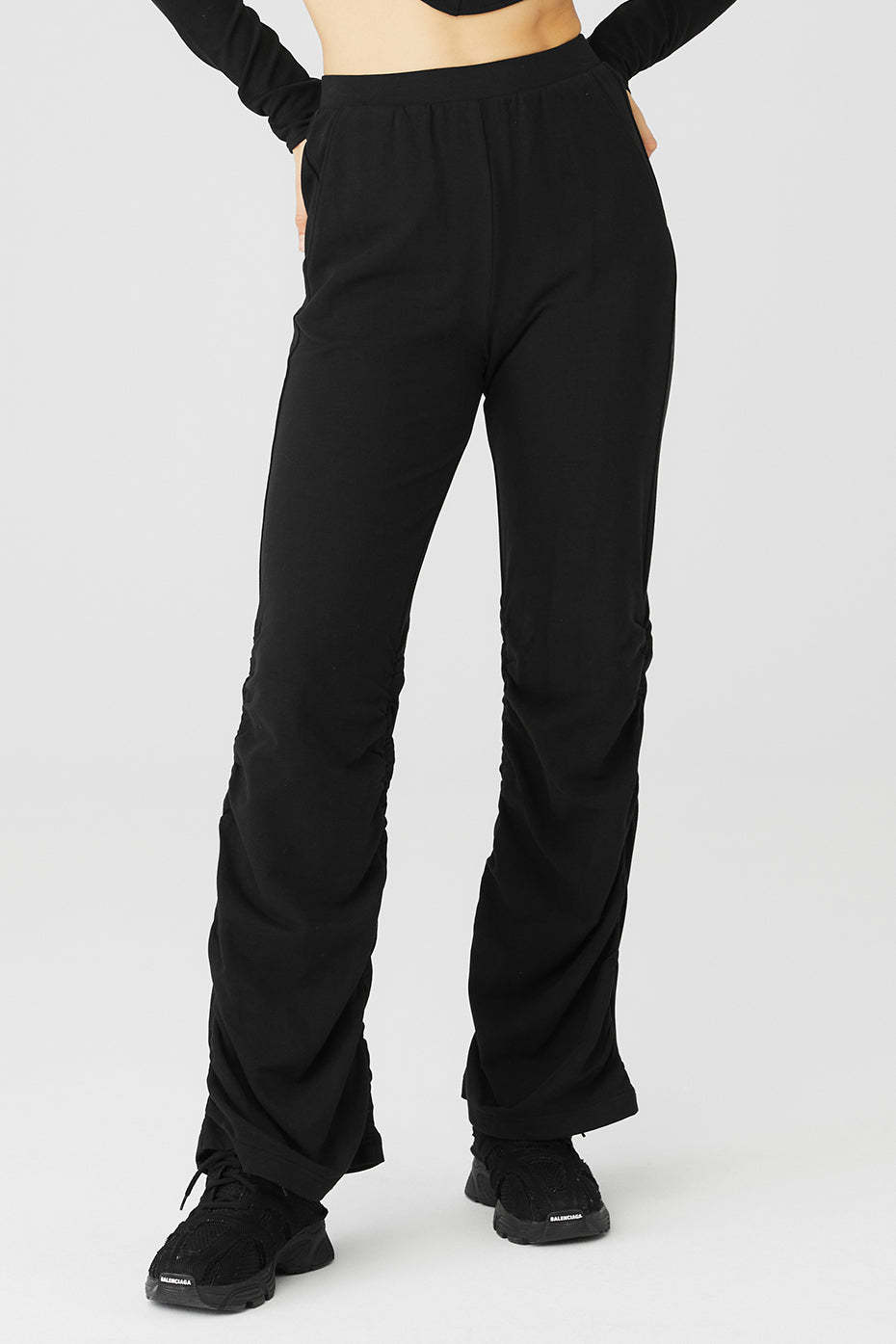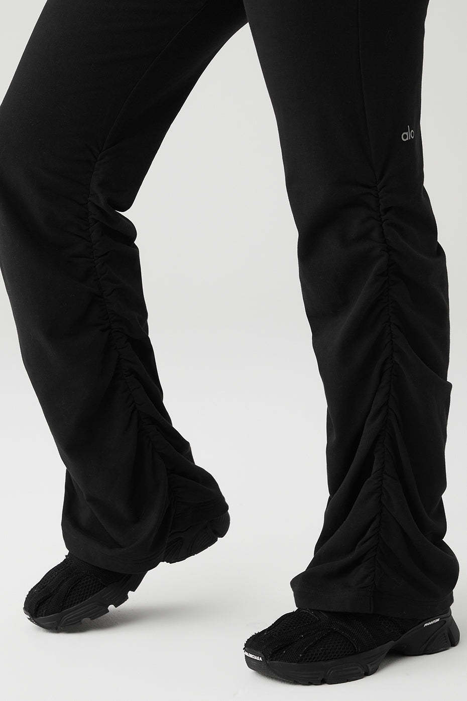 Smooth and snatched up top, ruched and relaxed down low. The Ruched Soft Sculpt Pant has it both ways with a skinny elastic waist band and wide leg fit that puddles at the hem. So soft in French terry and elevated for right now, this pant will become a new go-to. Wear it out with the matching bra tank or long sleeve top for the win.