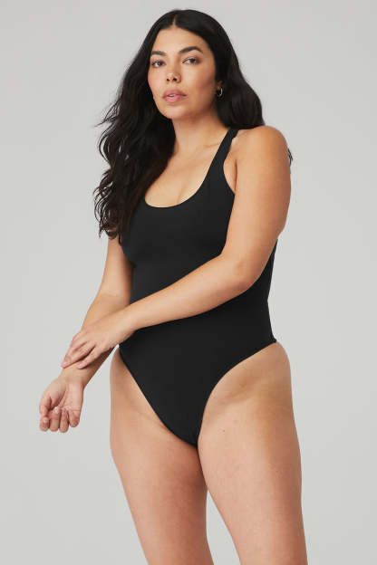 Literally the perfect layer 〞 no VPL, tons of cool. The Sleek Back Bodysuit in sculpting Airbrush features a built-in shelf bra for light support, a T-back, scoop neckline and a thong backside for super-smooth layering under leggings.